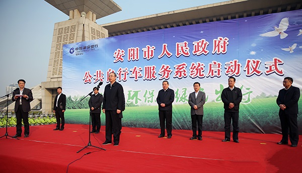 市委副書(shū)記、市長(zhǎng)馬林青在儀式上致辭。他說(shuō),公共自行車(chē)服務(wù)系統(tǒng)是城市公共交通的延伸和補(bǔ)充,既能夠降低出行成本,有效打通市民出行的“最后一公里”,引導(dǎo)低碳生活、綠色出行,又能預(yù)防和緩解交通擁堵,促進(jìn)城市低碳環(huán)保、節(jié)能減排,對(duì)于我們建設(shè)文明城市、智慧城市,提升城市品質(zhì)和形象,具有非常重要而現(xiàn)實(shí)的意義。馬林青表示,今天的啟動(dòng)儀式,是我們提升城市公共服務(wù)功能的一個(gè)新起點(diǎn)。市委、市政府將全力推動(dòng)自行車(chē)服務(wù)系統(tǒng)全覆蓋,實(shí)施更多、更直接、更有效的便民惠民工程。希望河南省建設(shè)銀行、常州永安公司一如既往地支持安陽(yáng)發(fā)展,持續(xù)拓展合作深度和廣度。希望自行車(chē)系統(tǒng)運(yùn)營(yíng)單位加快建設(shè)步伐、完善網(wǎng)點(diǎn)布局、不斷提升服務(wù)水平,把公共自行車(chē)服務(wù)系統(tǒng)建成群眾滿(mǎn)意的暖心工程。希望每一位市民群眾積極響應(yīng)“綠色出行”,主動(dòng)參與和支持公共自行車(chē)服務(wù)系統(tǒng),多用公共自行車(chē)、愛(ài)護(hù)公共自行車(chē),展現(xiàn)安陽(yáng)精神、塑造安陽(yáng)形象。