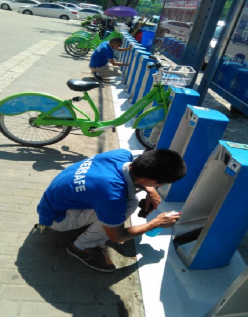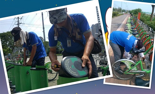 雖然太陽毒辣,曬得皮膚刺疼刺疼的,但是永安的工作人員們?yōu)楸U显O(shè)備得到及時(shí)的維護(hù),市民順利用車,仍然堅(jiān)守崗位。