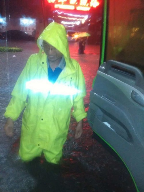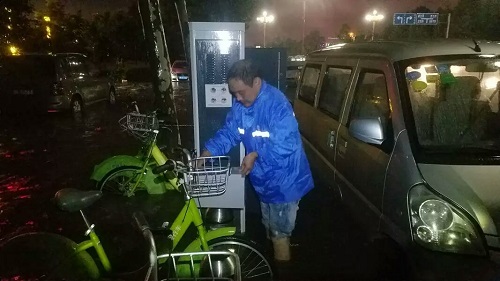 夜晚暴雨如約而至,許多在家休息的員工主動(dòng)請(qǐng)纓,不顧被雨水沖刷上來的污物,任憑肆虐的雨水濕透鞋褲,在雨水中逐個(gè)檢查站點(diǎn)的各個(gè)部位。
