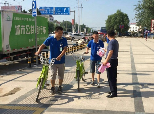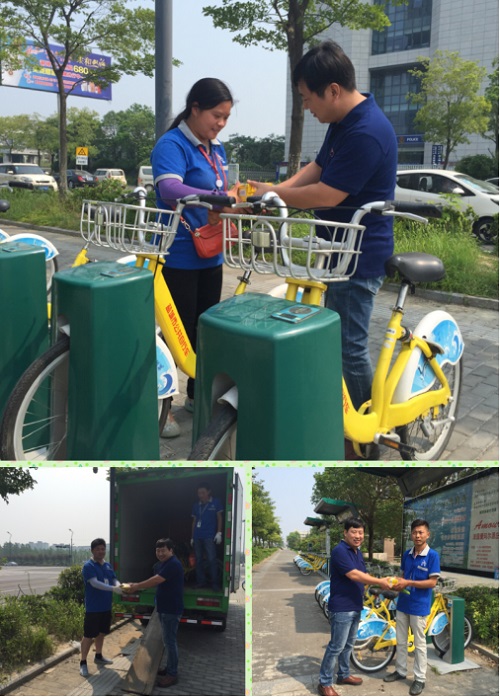 在7月27日下午最熱的時間段,漣水公共自行車管理中心負責人前往站點,為那些堅守在一線的巡檢師傅們送上一片清涼。