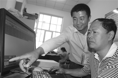 黑河市城管局局長張瑾忠(右)查看公共自行車監(jiān)控信息