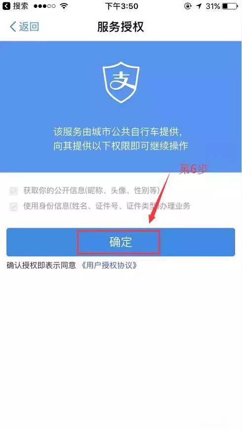 6、因?yàn)槭鞘状问褂茫?strong>會(huì)出現(xiàn)一個(gè)授權(quán)服務(wù),要求公開(kāi)一定的個(gè)人信息,以及使用身份信息辦理這項(xiàng)業(yè)務(wù)。如果沒(méi)問(wèn)題,點(diǎn)擊“確定”就好。