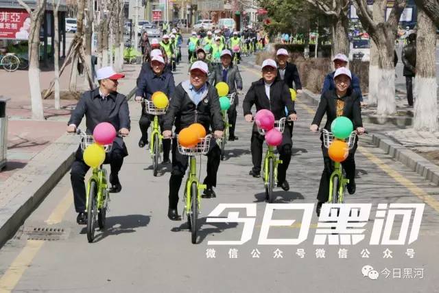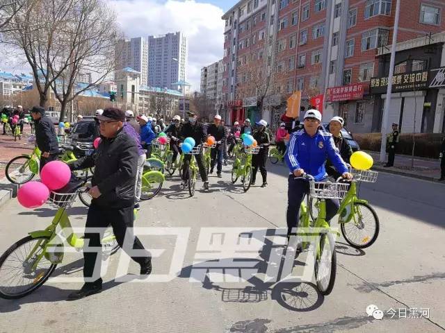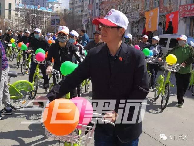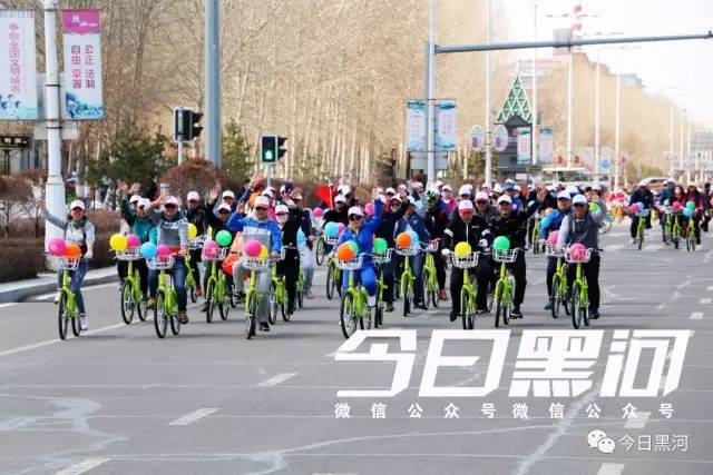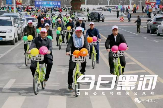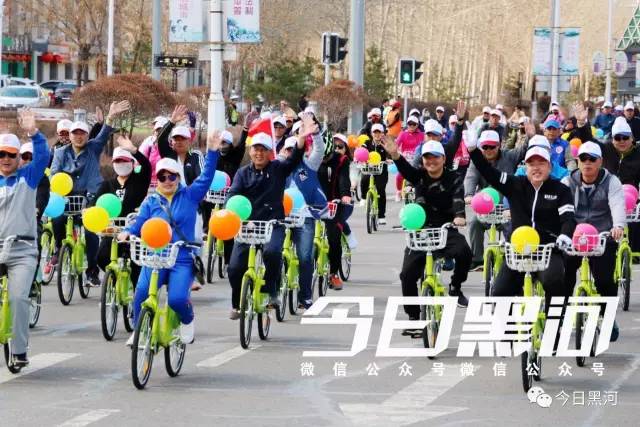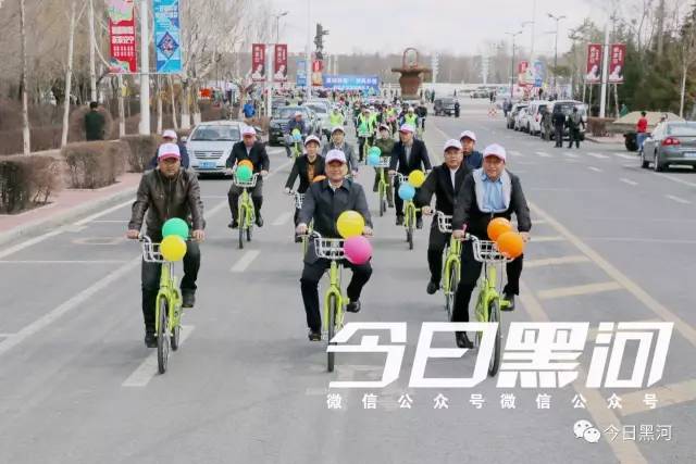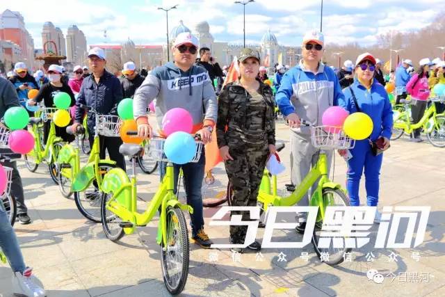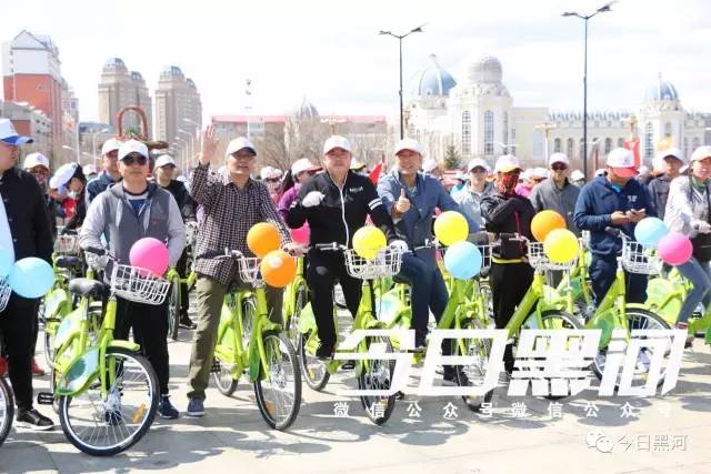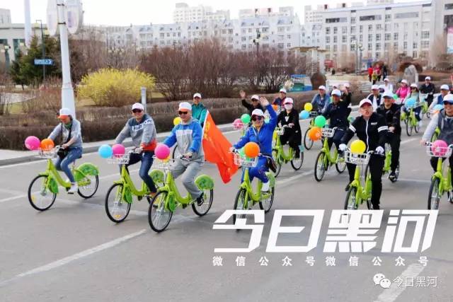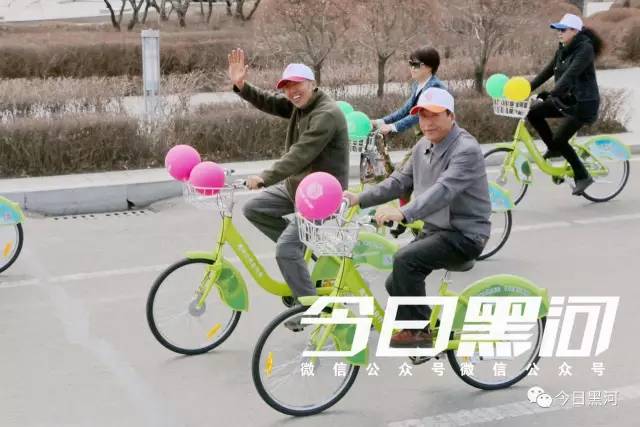 他們都是來(lái)參加“黑河封面”平臺(tái)開(kāi)通運(yùn)行啟動(dòng)儀式的,他們將騎公共自行車?yán)@行市區(qū)慶祝開(kāi)通。