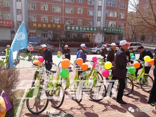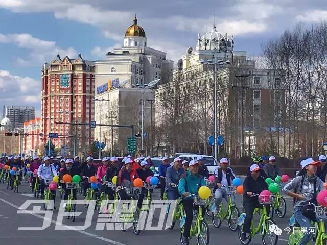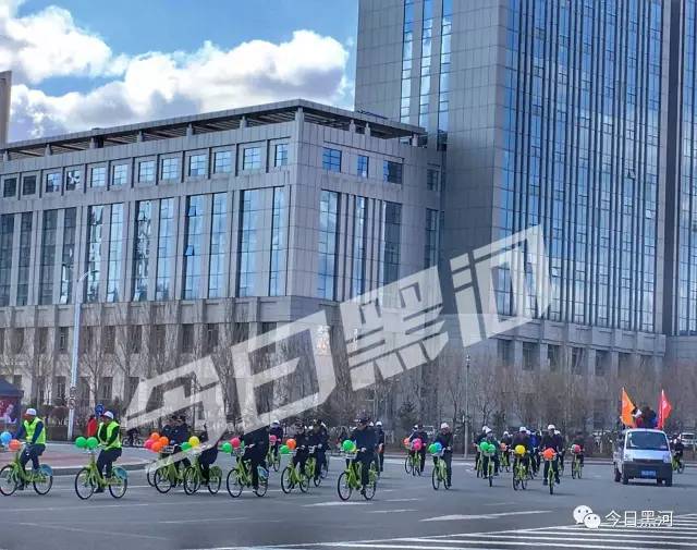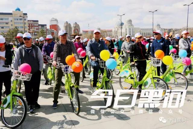 今天10點(diǎn)左右,在黑河世紀(jì)廣場(chǎng)遛彎和附近的居民會(huì)發(fā)現(xiàn),世紀(jì)廣場(chǎng)來(lái)了一群戴著小白帽騎小綠的人,這是要干嘛?