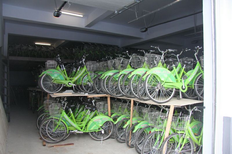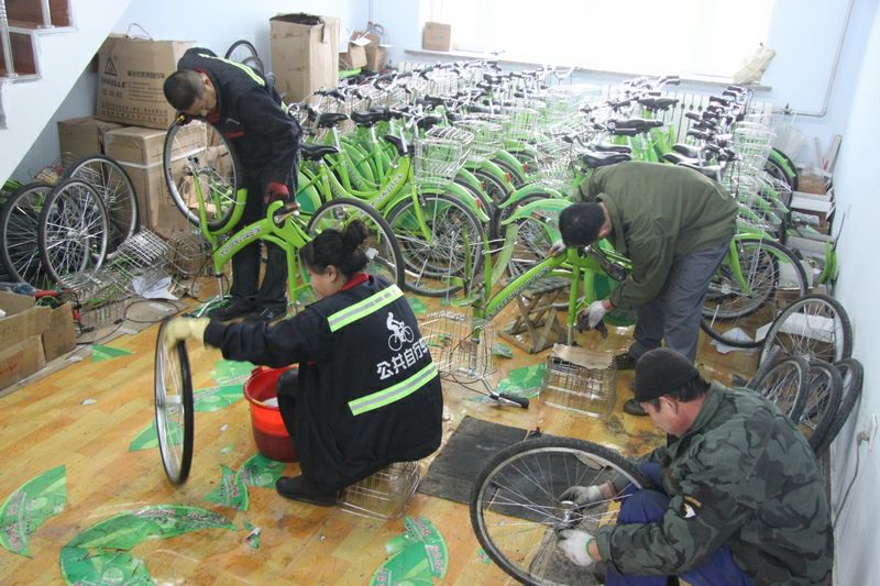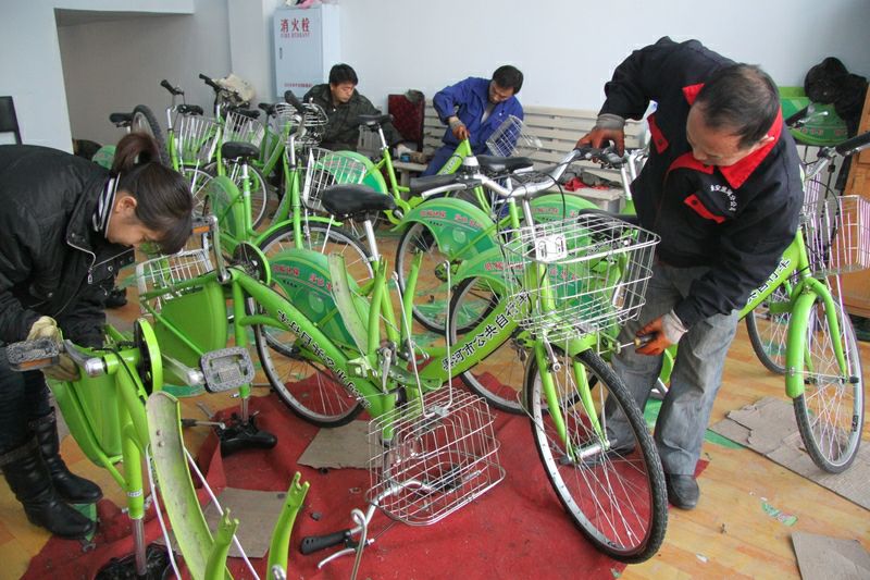 初冬時(shí)節(jié),我公共自行車管理中心將存放入庫的自行車全部維修保養(yǎng)。對(duì)每輛自行車都要進(jìn)行清洗、注油、補(bǔ)漆、平車圈、調(diào)剎車、調(diào)鏈條等十幾道工序,維修完畢的自行車安排專人驗(yàn)收。待明年春季投放使用時(shí),讓每輛自行車煥然一新,使廣大市民對(duì)我們的服務(wù)放心滿意。