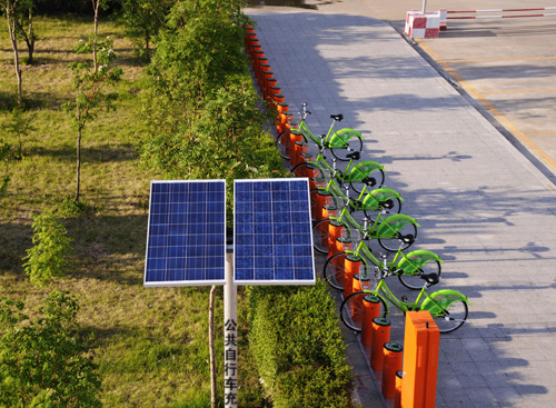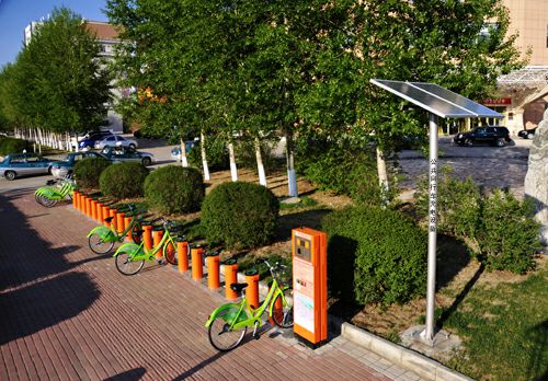 黑河市公共自行車倡導(dǎo)“節(jié)能減排、低碳出行、綠色環(huán)保、方便群眾”的理念,提升邊境口岸旅游文化城新形象,黑河市在我省率先開啟公共自行車便民服務(wù)項目。 黑河市公共自行車系統(tǒng)采用了高新太陽能節(jié)能技術(shù),在真正意義上實現(xiàn)了“節(jié)能減排、低碳出行”。目前,在大島國貿(mào)城、商貿(mào)大酒店及龍濱公園這三個點安裝了太陽能充電設(shè)備。
