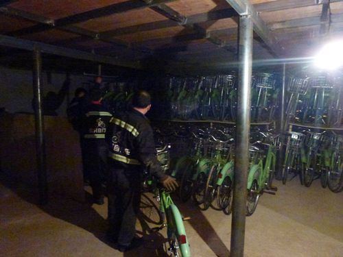 黑河公共自行車冬季停止運(yùn)營(yíng)后,留下10名有維修自行車技術(shù)的員工,將2230輛自行車逐一進(jìn)行檢修保養(yǎng),入庫(kù)存放,到明年春季根據(jù)天氣情況適時(shí)投入使用。下圖為維修人員正在認(rèn)真地工作