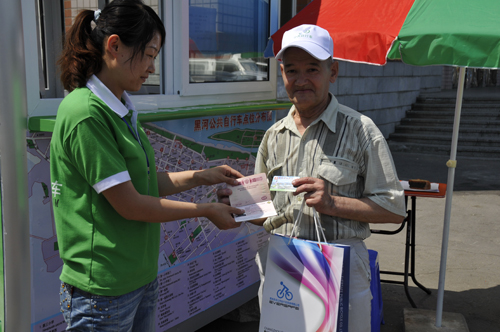 6月2日,黑河市公共自行車辦卡點迎來一位俄羅斯客人,他對黑河的公共自行車表示贊揚,極大的方便了市民的出行。
